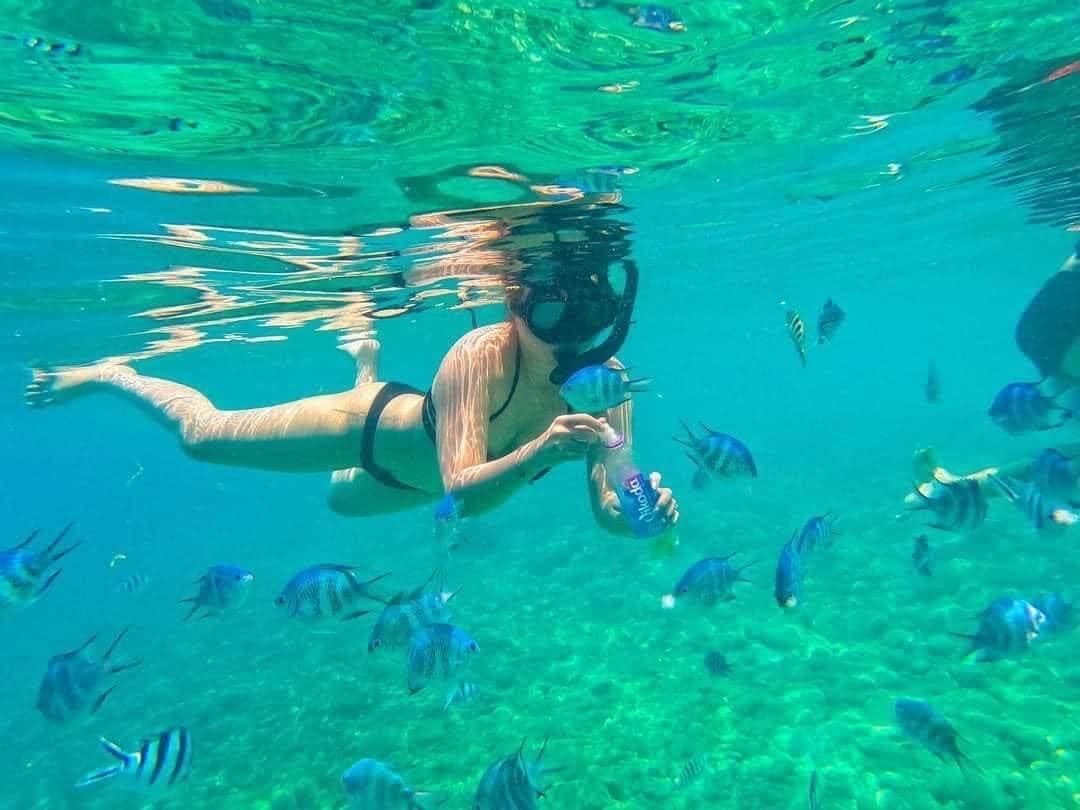 - 09h00: Hướng dẫn viên sẽ tóm tắt hành trình, đưa Quý khách đi cano đến đảo Hòn Mun Nha Trang. Khi đến nơi, sau khi ổn định chỗ ở trên đảo, hướng dẫn viên sẽ phát kính lặn và ống thở để Quý khách khám phá các rạn san hô đa dạng và phong phú. Đây là nơi tuyệt vời để lặn ngắm các rạn san hô đầy màu sắc, các loài cá và sinh vật biển phong phú.